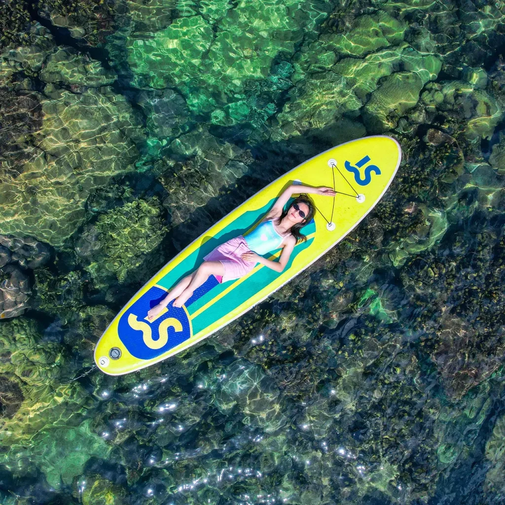 - Dàn dựng bối cảnh với ván SUP (Stand-up Paddleboard) màu sắc.
